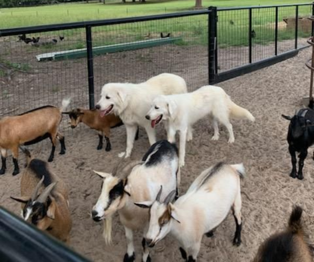 Our dogs serve as livestock guardians on our cattle ranch in East Texas. Strong and nimble, they grow up alongside farm animals and children, efficiently safeguarding both livestock and property.