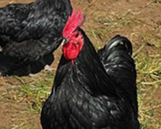 The Australorp is a chicken breed of Australian origin. It is a large, soft-feathered bird, with white toenails, black legs and beak, and a moderately large and upright single comb, with five distinct points.